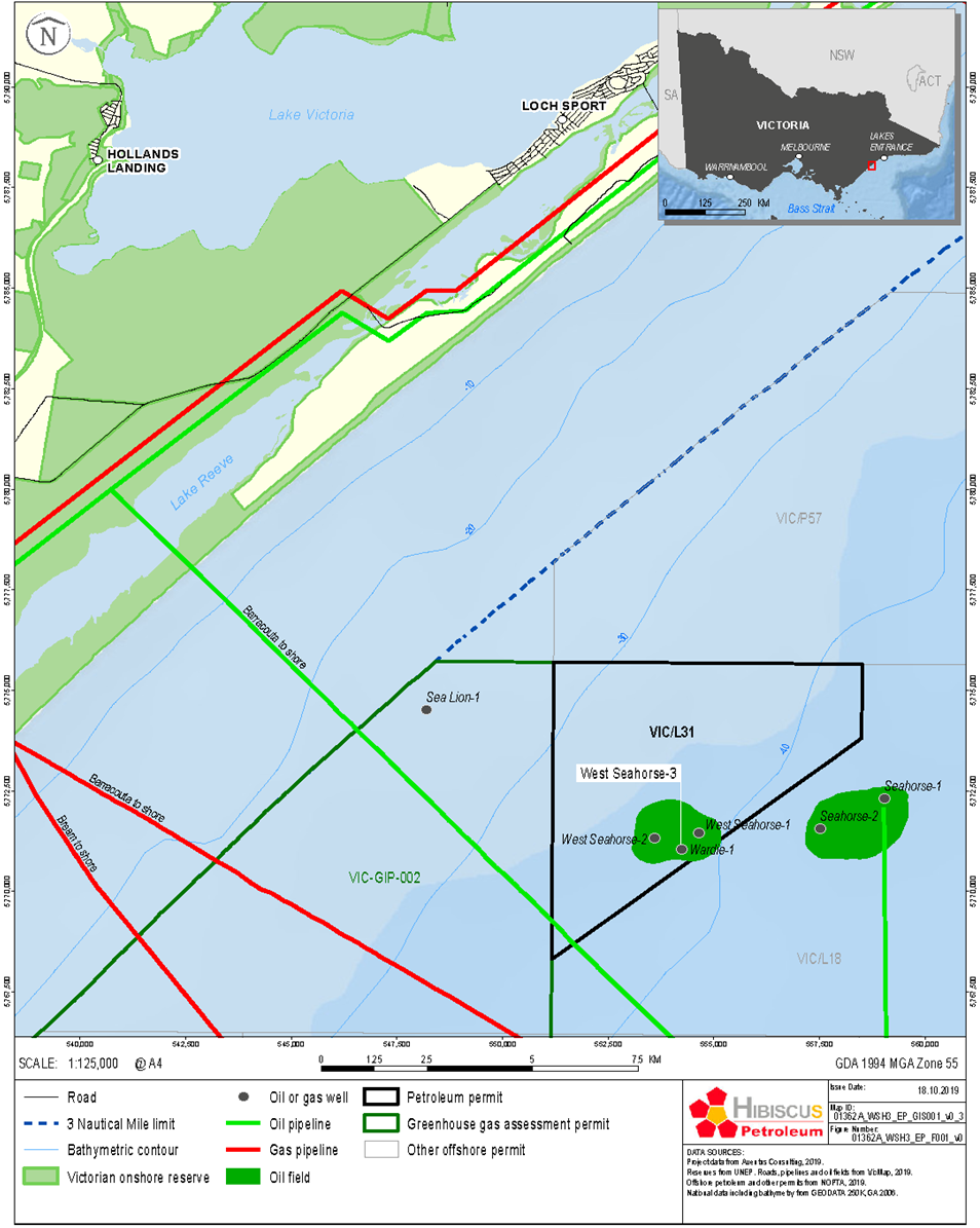 The petroleum activity is defined as non-production and decommissioning operations within VIC/RL17, involving removal of the West Seahorse-3 wellhead and Wardie-1 conductor (located only 2.8 meters apart) in water depths of approximately 40m. The wells have been designated plugged and abandoned, and there are no other petroleum activities associated with the wells other than the cutting (approximately 2 meters below the mudline) and retrieval of the well head and section of conductor pipe, along with associated activities and monitoring. There are no credible hydrocarbon spill scenarios from the wells and the extent of the Petroleum Safety Zone (PSZ) covering a 300 m-radius area around the wells has been used to define the operational area. To determine the extent of the environment that may be impacted by the activity, the unlikely event of a marine diesel oil (MDO) spill due to a vessel collision within the operational area was considered as the worst-case spill scenario. A vessel spill would be restricted to less than 150m3 of MDO, however previous Oil Spill Trajectory Modelling (OSTM) undertaken for a 200m3 MDO vessel spill incident at the West Seahorse location was utilised for this activity. This approach is conservative and mitigating strategies (such as tank lightening) would further limit potential spill volumes. The decommissioning activities will be completed as part of a vessel-based program lasting 7 to 14 days conducted in 2025-2026, subject to vessel availability and weather constraints. |