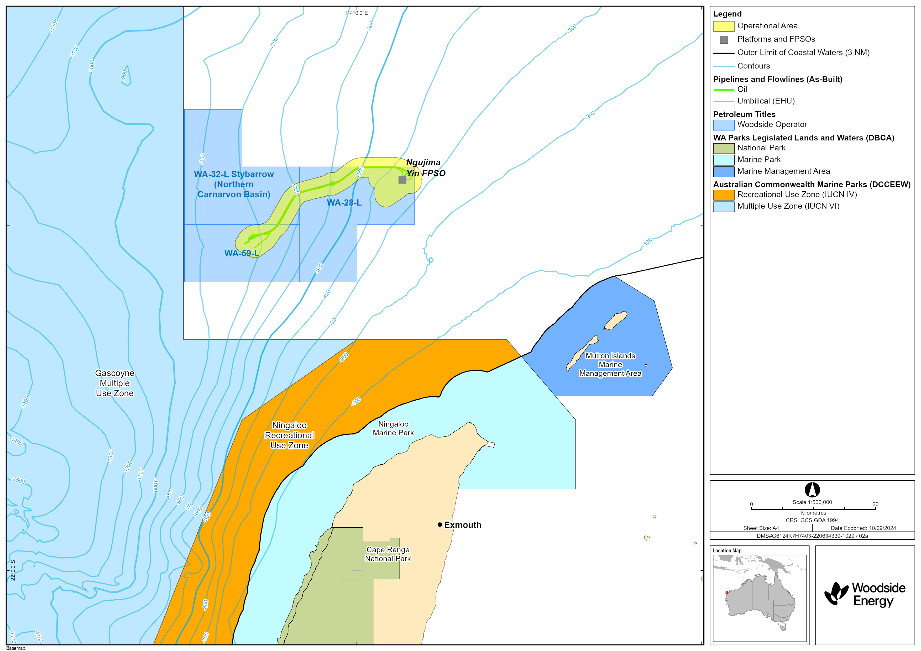 Woodside Energy Limited is submitting a 5-year environment plan revision for the Ngujima-Yin (NY) floating production, storage and offloading (FPSO) Facility Operations activity. The NY activity commenced operations in 2008 and is located in Commonwealth waters of the Exmouth Sub-Basin of Western Australia (WA) approximately 43 km north of North-West Cape, WA. The water depth at the FPSO mooring location is approximately 340 m with wells located in water depths up to 849 m. The NY FPSO and subsea infrastructure is located in Production Licence Areas WA-28-L and WA-59-L. The facility currently produces crude oil from the Vincent reservoir (VIN); as well as the Norton over Laverda (NOL), Laverda Canyon Reservoir (LAV) and Cimatti (CIM) fields. The three NOL, LAV and CIM fields are collectively referred to as the Greater Enfield (GE) Development. The GE rigid production flowline operates under Pipeline Licence WA-28-PL. The NY facility is comprised of the FPSO vessel, processing and separation facilities (for oil, water and gas), gas compression facilities and associated subsea infrastructure. Under normal operations, surplus gas and produced water is disposed by reinjection back into the reservoir. Gas reinjection also provides artificial lift for the CIM field. For the GE wells, treated sea water produced topside is reinjected via dedicated water injection wells for pressure support. After processing, the stabilised crude oil is offloaded to trading tankers for export. The activities proposed to occur within Permit Area WA-28-L, WA-59-L and WA-28-PL include: - Routine production and associated activities from existing subsea wells - Crude oil offloading activities - Routine and non-routine inspection, monitoring, maintenance and repair (IMMR) of the FPSO and associated subsea infrastructure - Disconnection and sailaway of the FPSO with the submerged turret production (STP) mooring and subsea infrastructure remaining in place - Non-routine, unplanned activities and incidents associated with the above. The NY FPSO Facility Operations EP is intended to remain in force for up to five years following acceptance. |