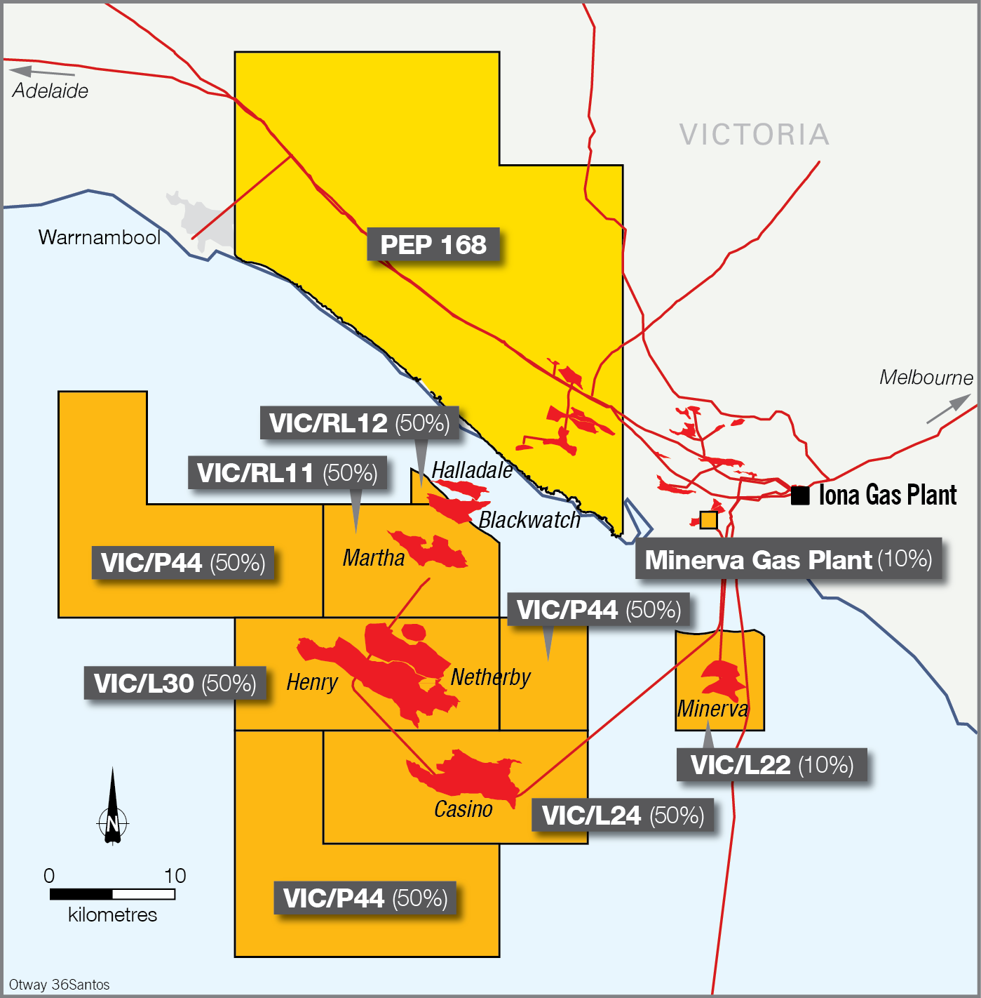 The CHN offshore assets consist of the following subsea wells and pipelines:• Casino-4 and Casino-5 (located in Production Licence VIC/L24);• Henry-2 and Netherby-1 (located in Production Licence VIC/L30);• The 32.6 km Casino Stage I Pipeline (Licenced Pipeline VIC/PL37) and umbilical which connects Casino-4 and Casino-5 to shoreline processing facilities at the Iona Gas Plant; • The 22 km Casino Stage II Pipeline (Licenced Pipeline VIC/PL42) and umbilical which connects the Henry-2 and Netherby-1 wells to the Casino Stage 1 Pipeline.