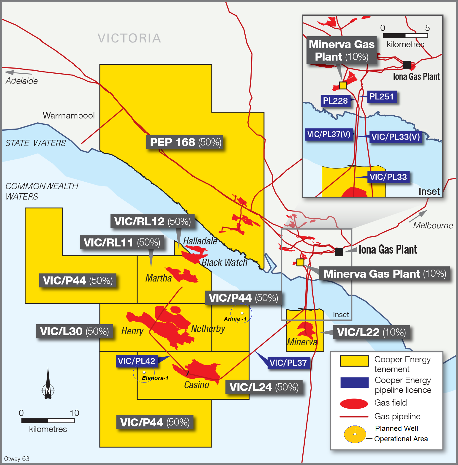 Cooper Energy propose to undertake exploration drilling activities in two separate titles located within Australian Commonwealth waters. The Cooper Energy: Otway Basin Exploration Drilling EP (this EP) provides for drilling activities for up to two (2) exploration wells (Annie-1 and Elanora-1) in the Otway Basin off Victoria’s south-west coast, in an area where hydrocarbon exploration and production is well established. The proposed well sites are located within waters ranging in depth from approximately 62m to 75m.