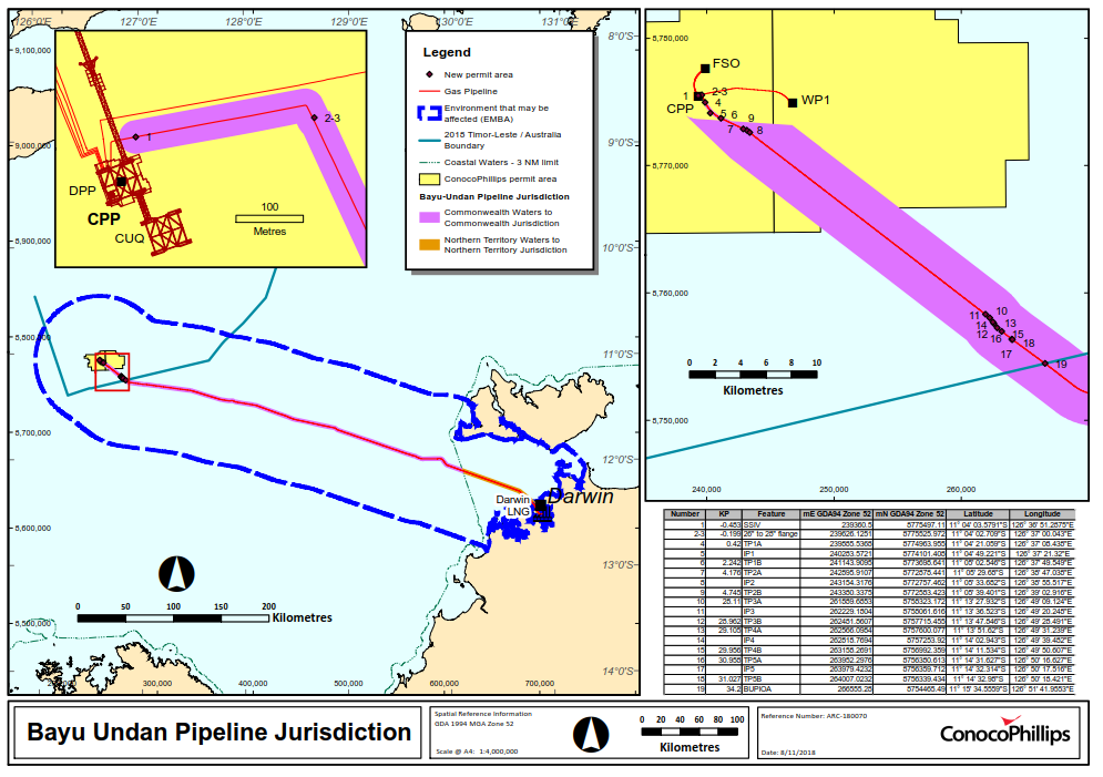 The EP includes transport of dry natural gas from the Bayu-Undan field to the DLNG Plant located at Wickham Point, Darwin and Pipeline inspection, maintenance and repair (IMR) activities.