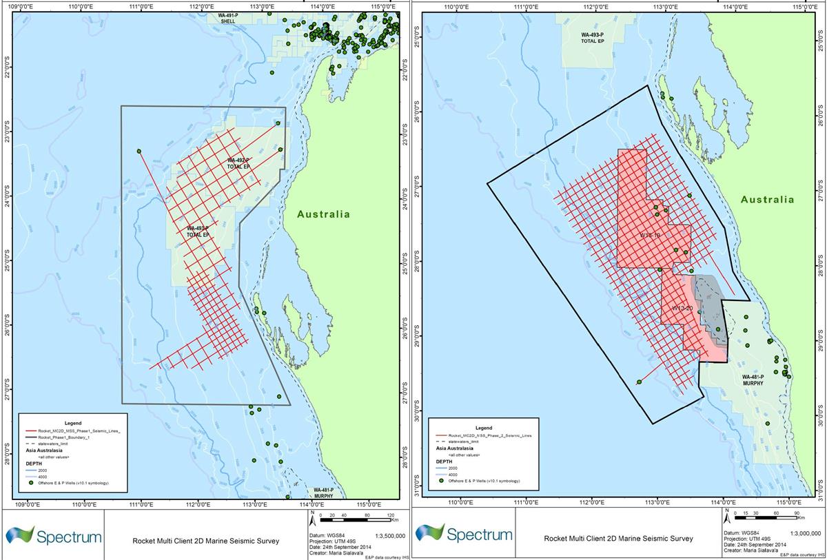 Spectrum Geo Pty Ltd (Spectrum) proposes to acquire a multi-client two-dimensional (MC2D) marine seismic survey (Rocket MC2D MSS) within the Houtman Sub-basin offshore from Western Australia (WA), between December 2014 and the end of June 2015. The survey will comprise acquisition of approximately (~) 10,839 line kilometres (km) of 2D seismic data in water depths between ~50 and ~4,000 m.
