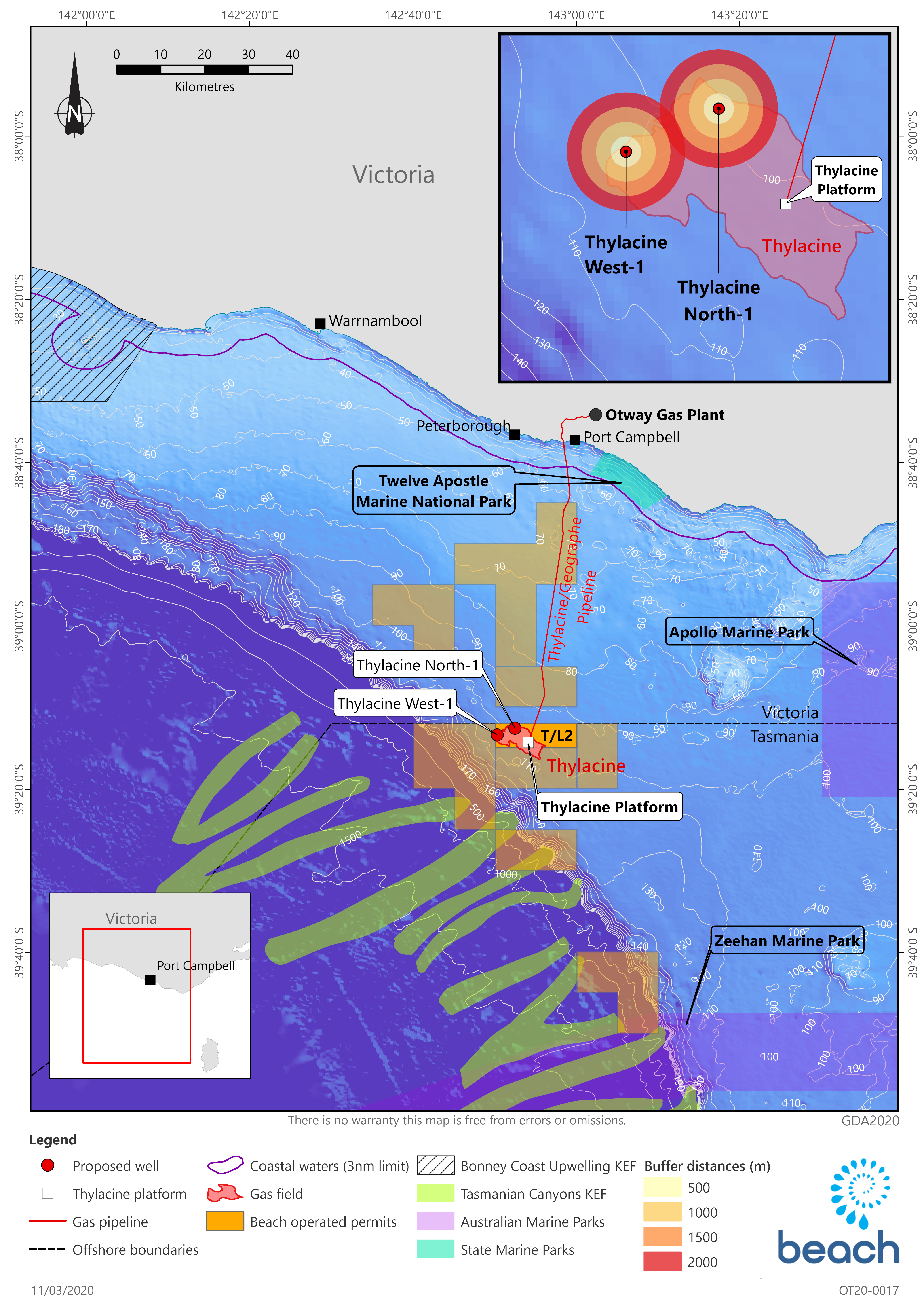 Prior to drilling the first well of the campaign (which will be either Thylacine North-1 or Thylacine West-1) in T/L2, it is planned that an Anchor Handling Tug Support (AHTS) vessel will pre-lay the anchors and mooring lines of the mobile offshore drilling unit (MODU); this is the scope of this EP and is referred to as the anchoring program (or the ‘petroleum activity’).