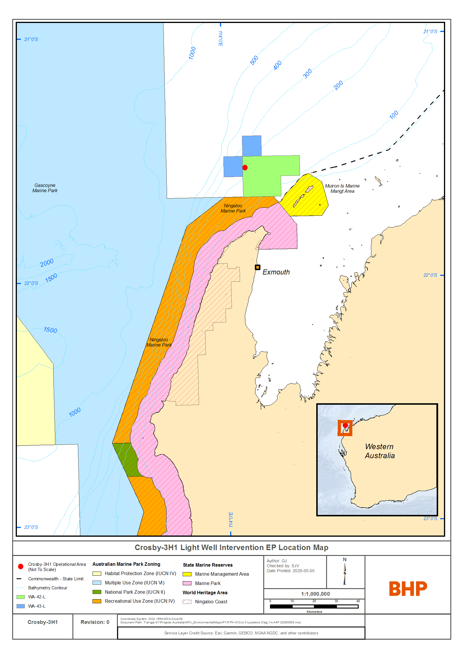BHP is planning to undertake riserless light well intervention (LWI) activities in relation to the Crosby-3H1 well located in production licence area WA-42-L in Commonwealth waters, which forms part of the Pyrenees Development. The Pyrenees Development recovers crude production from fields located in both WA-42-L and neighbouring WA-43-L using the Pyrenees Venture floating production, storage and offtake facility (FPSO).