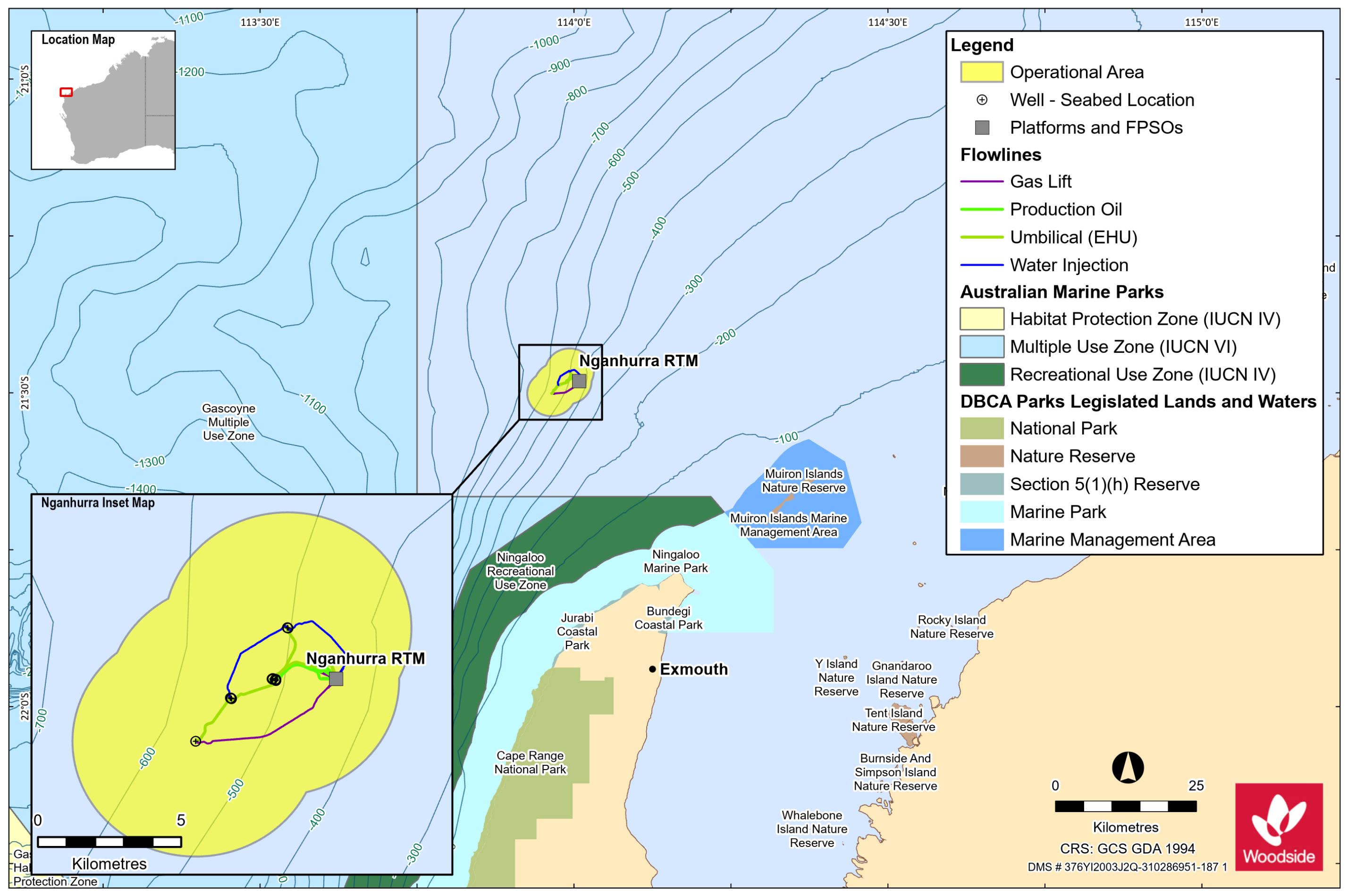 The Nganhurra Operations Cessation Environment Plan (EP) was revised and resubmitted on 8th November 2021 (Revision 8) to address the continued presence of the RTM on station to allow market engagement to occur to select a final removal concept. The inspection and preservation of the subsea systems and RTM will be ongoing until the RTM is removed from the title area, the wells are permanently plugged for abandonment, and final decommissioning of the field is completed.