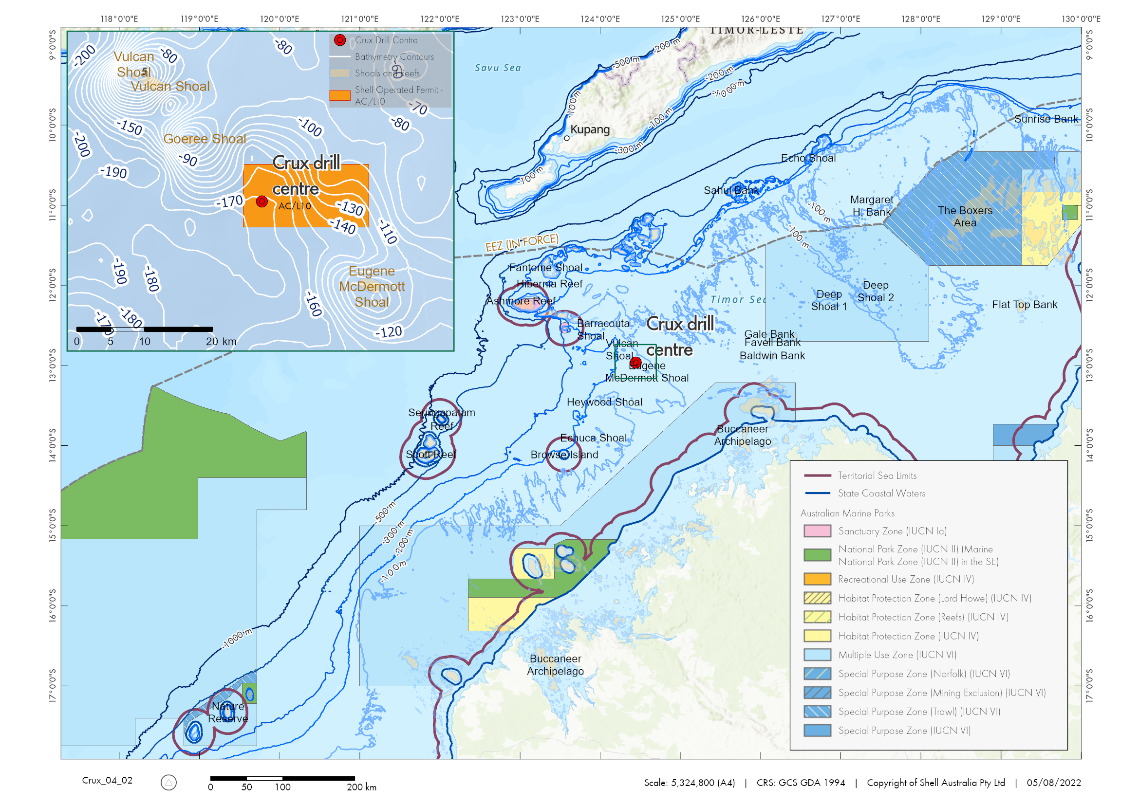 The project is being progressed by the Crux Joint Venture with Shell Australia as majority operator and encompasses the Production Licence AC/L10.