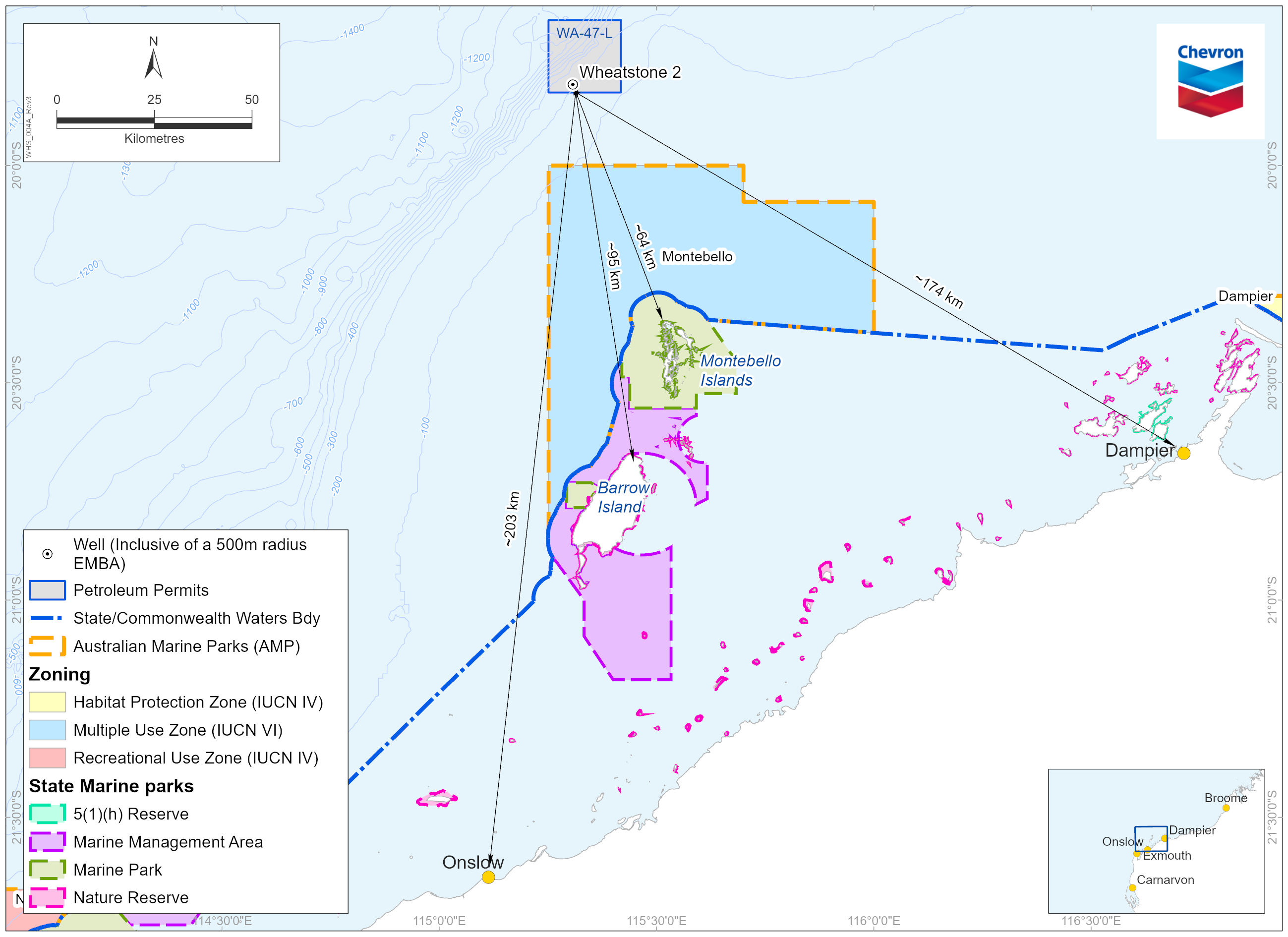 In 2011 petroleum title WA-47-L was transferred to the Wheatstone Joint Venturers, and Chevron Australia Pty Ltd (CAPL) became the nominated titleholder. This title included a legacy appraisal well, Wheatstone-2, that had previously been managed by CAPL. The well was drilled in 2007 and subsequently plugged and abandoned, with the wellhead left in situ during well abandonment. CAPL propose to leave the wellhead permanently in situ.