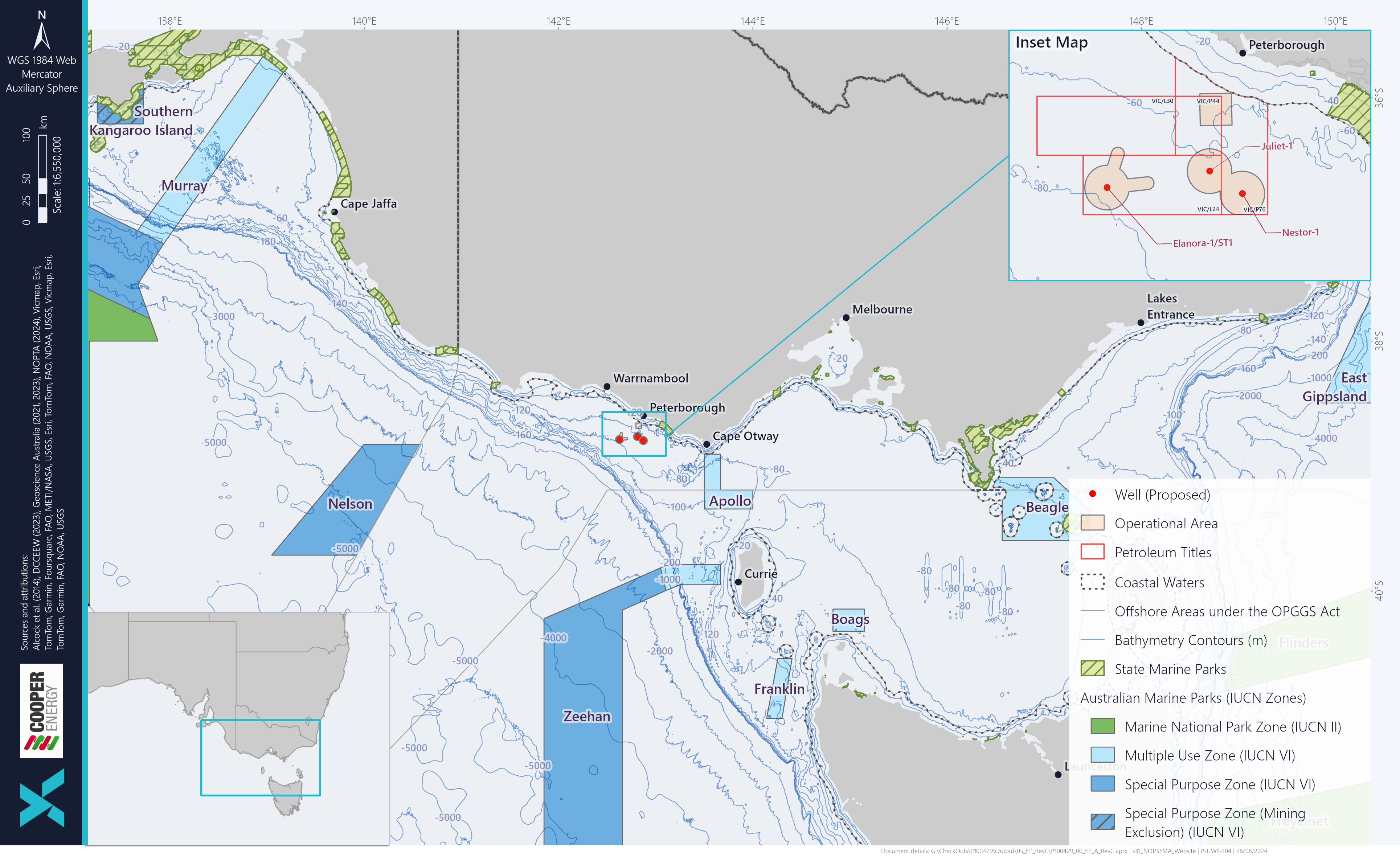 Cooper Energy (CH) Pty Ltd and Cooper Energy (MGP) Pty Ltd (Cooper Energy) are proposing to undertake an exploration drilling program within Commonwealth waters of the Otway Basin. Wells will be drilled in Cooper Energy’s existing licence areas approximately 25-40 km offshore from Peterborough in water depths ranging from 65 m to 74 m.