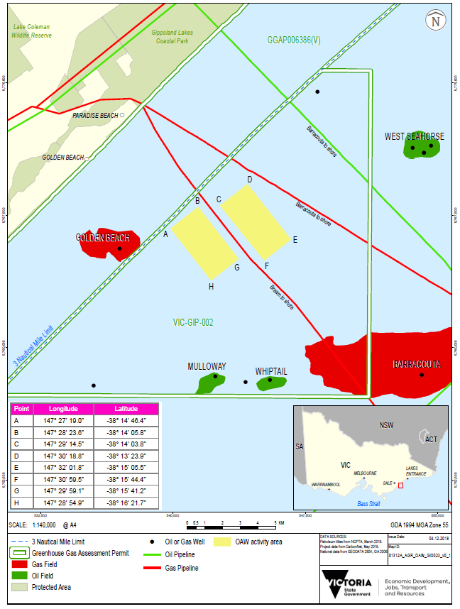 The Crown in right of Victoria is proposing to drill an offshore appraisal well within Greenhouse Gas Assessment Permit VIC-GIP-002 in Commonwealth waters offshore Gippsland. VIC-GIP-002 is managed by the CarbonNet project within the Victorian Department of Jobs, Precincts and Regions.