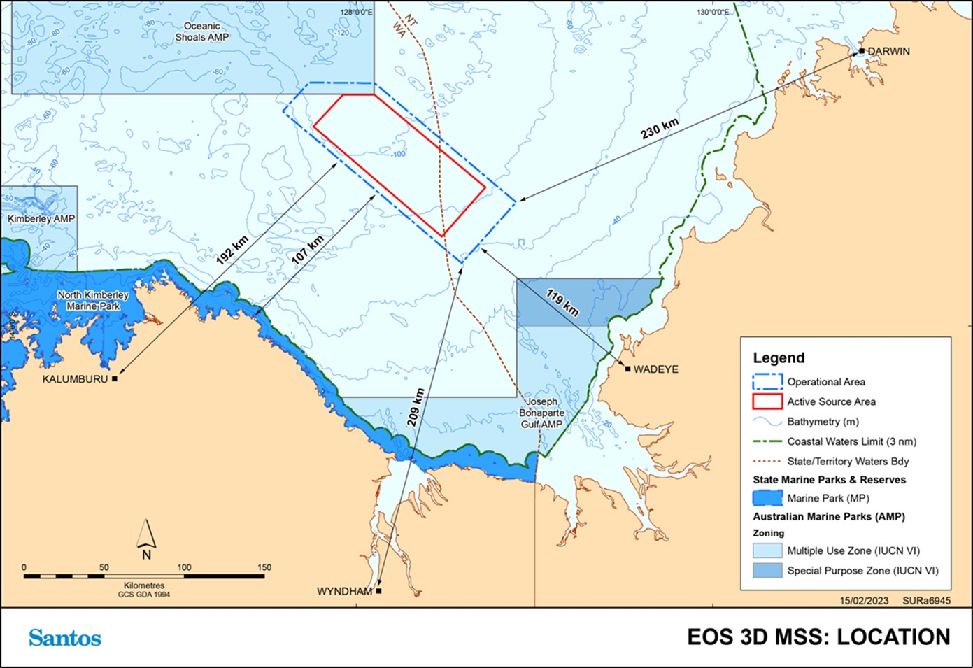 Santos Offshore Pty Ltd (Santos) plans to acquire a three-dimensional (3D) marine seismic survey (MSS) in Commonwealth waters in the Bonaparte Basin.