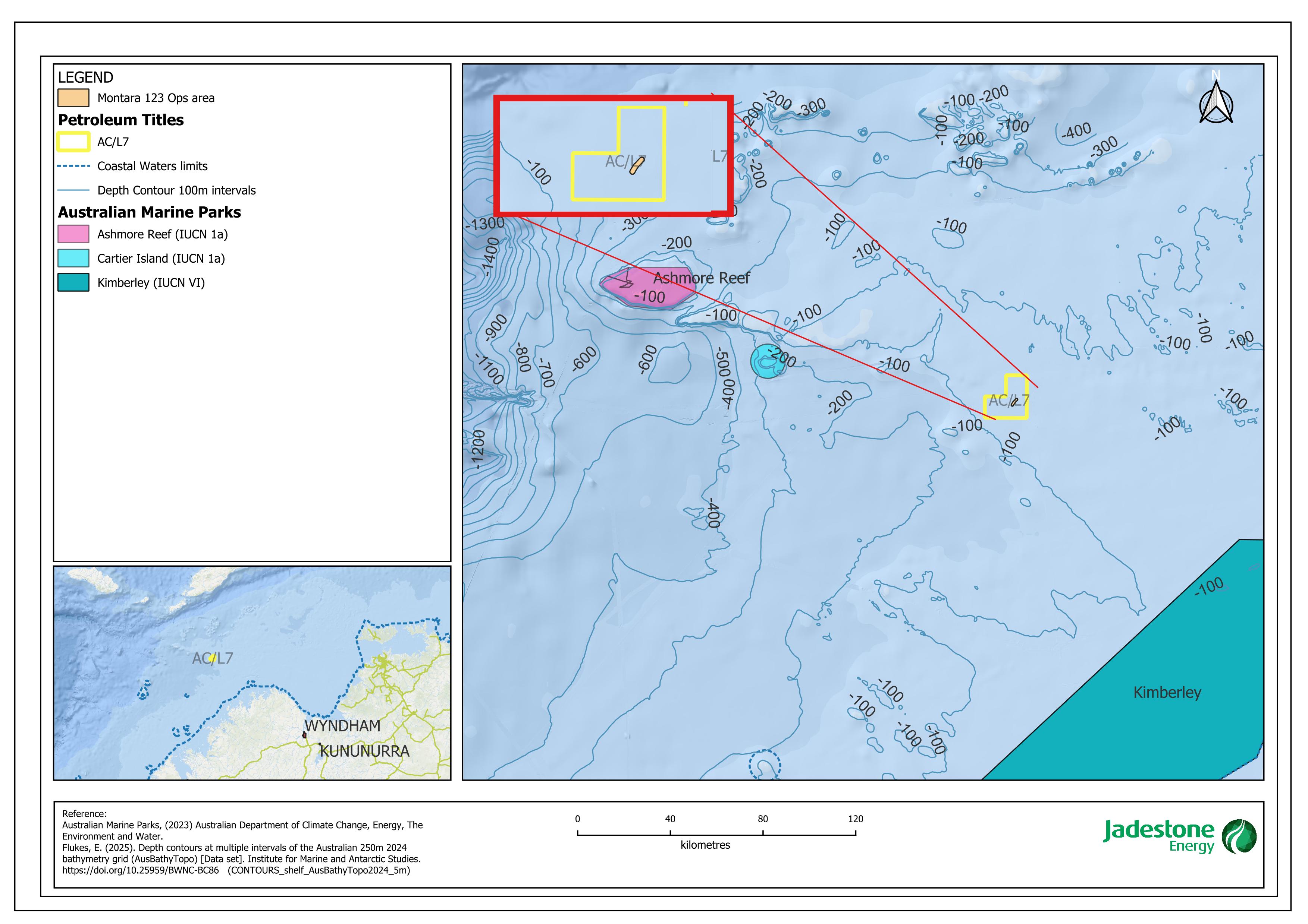 Jadestone Energy (Eagle) Pty Ltd (Jadestone Energy) plans to remove three wellheads, Montara-1, 2 and 3 from the Montara Field which lies approximately 690 km (373 nautical miles) east of Darwin in a water depth of approximately 80 m. The Montara Field was discovered in 1988 with the drilling of the exploration well Montara-1, and later appraised with the drilling of appraisal wells Montara-2 and Montara-3, in 1991 and 2002, respectively. The wells were suspended with annual monitoring undertaken by remotely operated vehicle (ROV).
