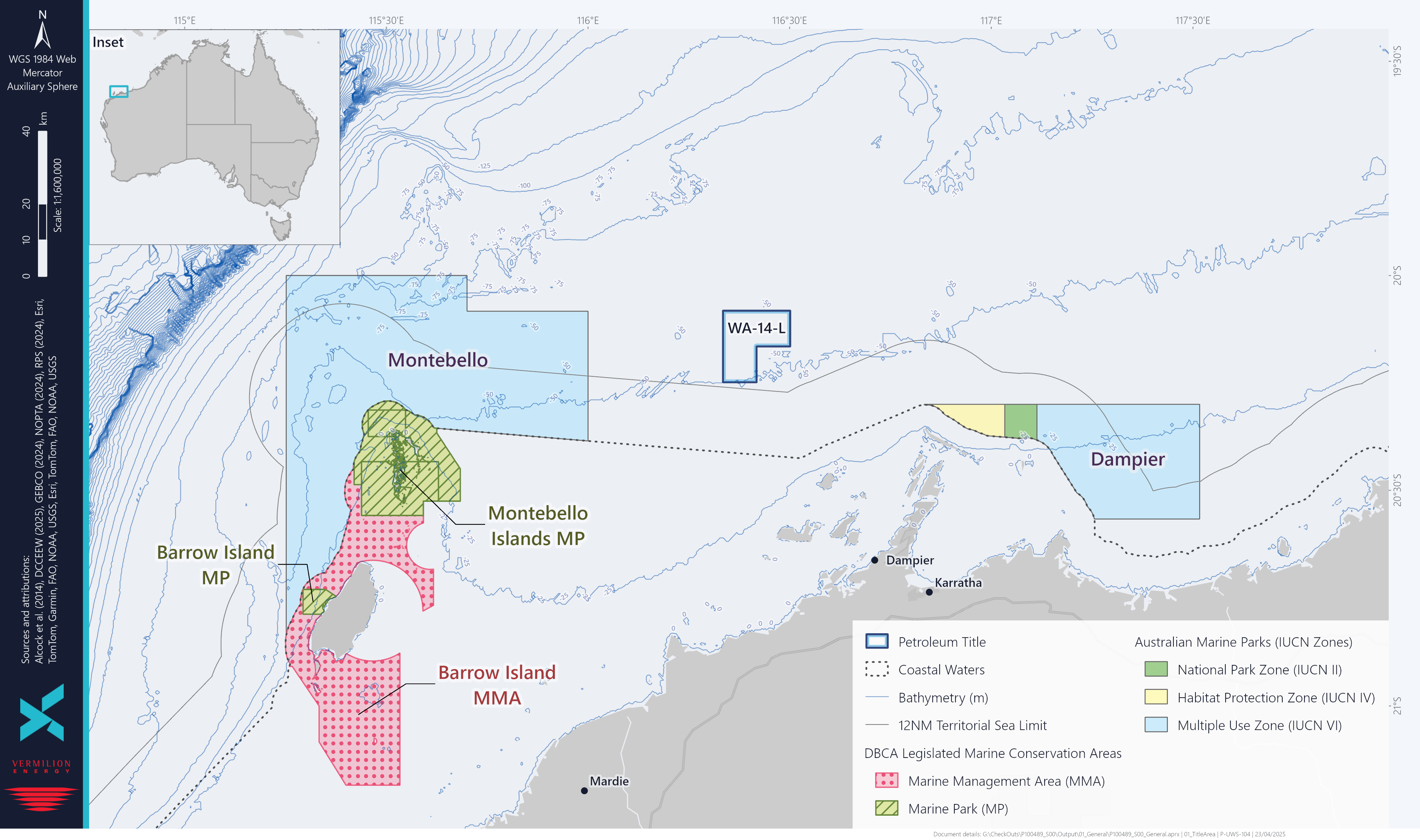 Vermilion Oil & Gas Australia Pty Ltd (VOGA) periodically conducts well construction operations in production licence area WA-14-L, using a jack-up Mobile Offshore Drilling Unit (MODU). WA-14-L, is located in Commonwealth waters in the Carnarvon Basin off the northwest coast of Western Australia, approximately 80 km northwest of Dampier and 110 km northeast of Barrow Island in water depths of approximately 50-60 m.