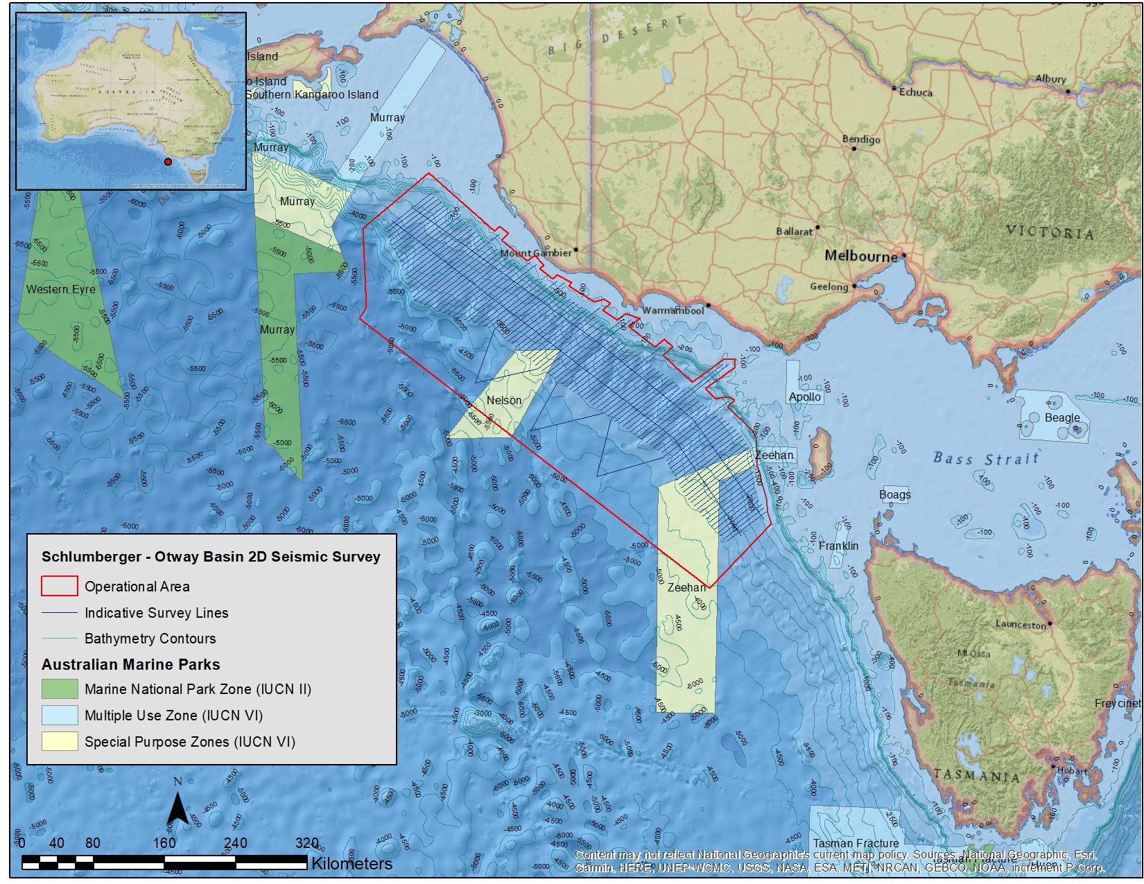 Schlumberger Australia Pty Limited (Schlumberger) is proposing to acquire the Otway Basin 2D Multiclient Marine Seismic Survey (Otway Basin 2DMC MSS), with an estimated survey duration of 100 days which will be acquired in the period from November 2019 to June 2020. This operational window has been defined to take into account weather limitations, vessel availability and marine fauna mitigation downtime. The objective of the MSS is to identify and assist in the appraisal of potential recoverable hydrocarbon reserves in the Otway Basin.