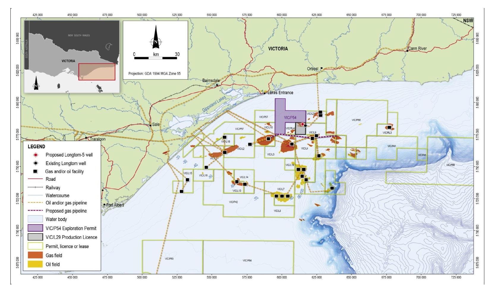 The Longtom gas field lies in the Gippsland Basin, offshore south-east Australia. The field is situated in the exploration permit VIC / P54 at a water depth of 56m. Gas is produced through two horizontal subsea wells and production trees installed at water depths of 51-57m. The two subsea wells are tied back to the Patricia Baleen offshore gas pipeline through the Longtom pipeline to the Patricia Baleen gas plant in Orbost, Australia.