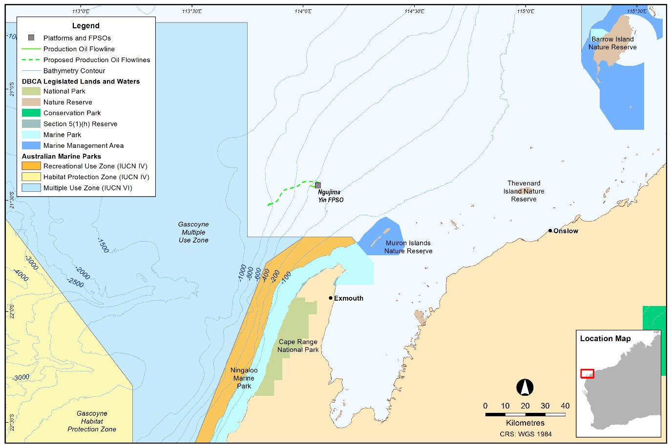 The Ngujima-Yin Floating, Production, Storage and Offloading (FPSO) facility is located over the Vincent oil field. Woodside have been producing from the Vincent field, located 50 km offshore Exmouth, Western Australia, since 2008.