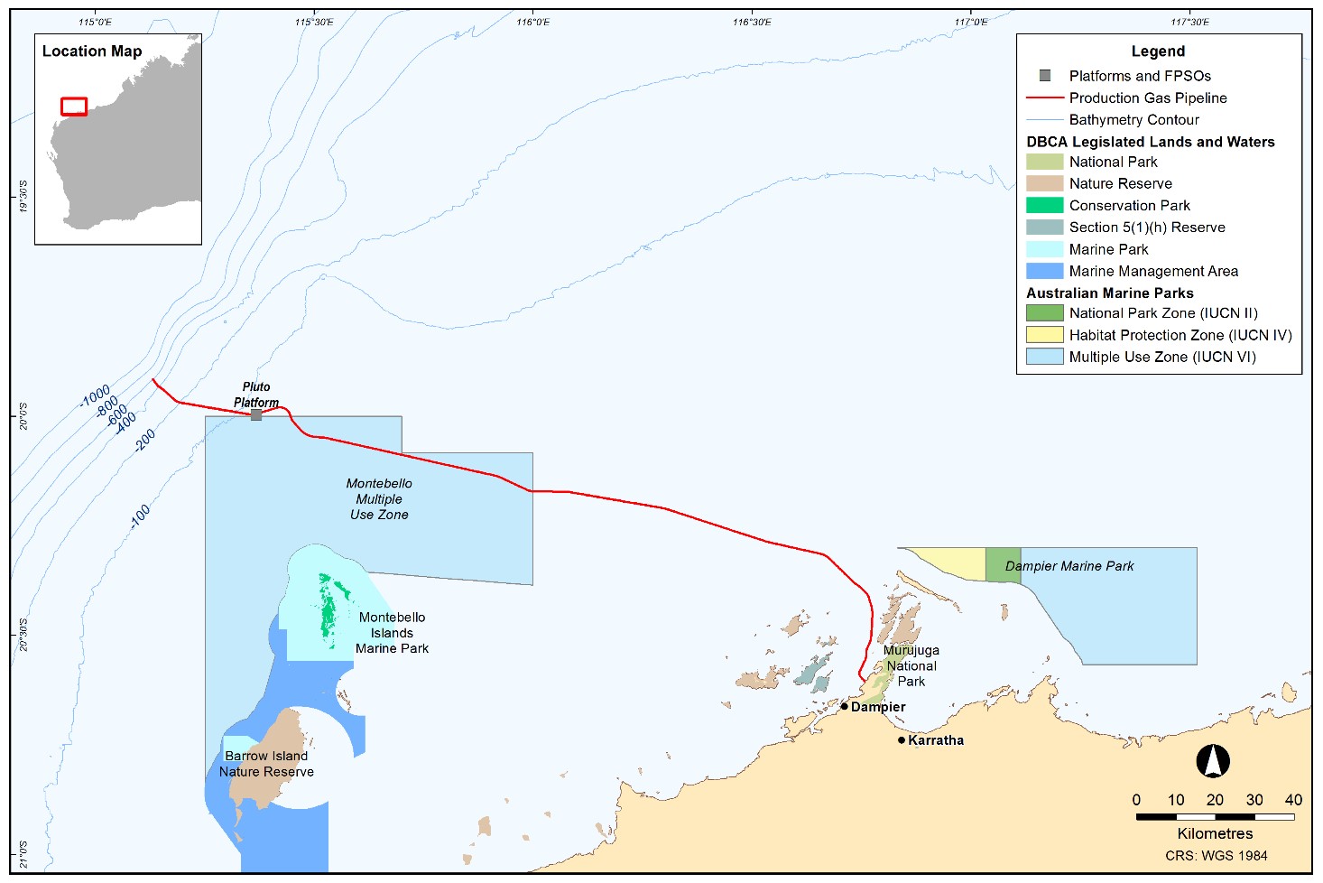The Pluto LNG project processes gas from the offshore Pluto and Xena fields in Western Australia. Gas is piped through an approximately 180 km pipeline to an onshore LNG processing train. The Pluto LNG project consists of the Pluto offshore platform, pipeline and onshore processing plant. The Pluto platform is located in Commonwealth waters approximately 174 km north-west of Karratha, Western Australia and has been in operation since 2012.